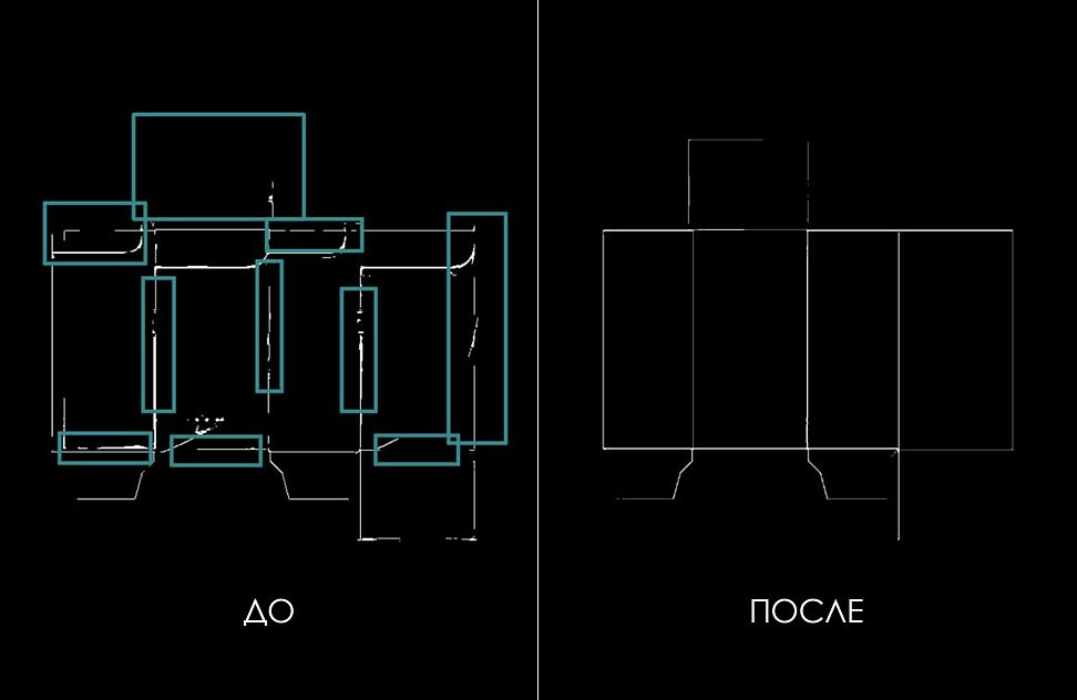 Ниже показано, как изменилась работа нейросети на реальных примерах разверток: слева — предыдущий результат автоматической обработки, справа — результат после оптимизации.